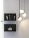 Som vägglampa kan du använda den mångsidiga Bright-lampan, som kan användas som vägg-, tak- eller spegellampa. Du kan också använda våra pendlar i hörnen av ditt badrum för stämningsfull badrumsbelysning. Du kan också använda våra LED-badrumslampor ovanför dina skåp, både som en bra arbetsbelysning, men naturligtvis också som bra belysning i hela badrummet.