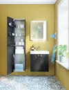 Den vackra Glow-spegeln är bakgrundsbelyst och den kvadratiska spegeln har rundade hörn för en mjukare och mer harmonisk look.