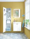 Den vackra Glow-spegeln är bakgrundsbelyst och den kvadratiska spegeln har rundade hörn för en mjukare och mer harmonisk look.
