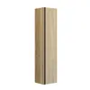 Du kan få in den naturliga looken i ditt badrum genom att välja badrumsskåp i trä. Vi har flera serier där du kan få badrumsskåp i trädekor. Vi har badrumsskåp i mörkt eller ljust trä och till och med skåp i nästan vitt eller grått trä. Du kan välja vad du vill ska passa i ditt badrum. Välj till exempel ett skåp från vår Luna-serie, där du kan välja att ha trä endast på sidorna och fortfarande hålla fronten i matt vit, till exempel. Detta ger ett snyggt och intressant utseende utan att träet helt tar över dina skåp. I vår Calidris-serie kan du till och med få en färg på din faner, så att du får både den vackra trästrukturen och en fin färg på din möbel.