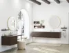 Du kan få in den naturliga looken i ditt badrum genom att välja badrumsskåp i trä. Vi har flera serier där du kan få badrumsskåp i trädekor. Vi har badrumsskåp i mörkt eller ljust trä och till och med skåp i nästan vitt eller grått trä. Du kan välja vad du vill ska passa i ditt badrum. Välj till exempel ett skåp från vår Luna-serie, där du kan välja att ha trä endast på sidorna och fortfarande hålla fronten i matt vit, till exempel. Detta ger ett snyggt och intressant utseende utan att träet helt tar över dina skåp. I vår Calidris-serie kan du till och med få en färg på din faner, så att du får både den vackra trästrukturen och en fin färg på din möbel.