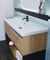 Du kan få in den naturliga looken i ditt badrum genom att välja badrumsskåp i trä. Vi har flera serier där du kan få badrumsskåp i trädekor. Vi har badrumsskåp i mörkt eller ljust trä och till och med skåp i nästan vitt eller grått trä. Du kan välja vad du vill ska passa i ditt badrum. Välj till exempel ett skåp från vår Luna-serie, där du kan välja att ha trä endast på sidorna och fortfarande hålla fronten i matt vit, till exempel. Detta ger ett snyggt och intressant utseende utan att träet helt tar över dina skåp. I vår Calidris-serie kan du till och med få en färg på din faner, så att du får både den vackra trästrukturen och en fin färg på din möbel.