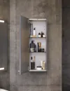 För att du ska få full överblick över dina föremål i väggskåpen kan du också välja belysning inne i de flesta väggskåp. Det skapar inte bara en mysig atmosfär i badrummet, utan gör det också lättare för dig att hitta saker.
