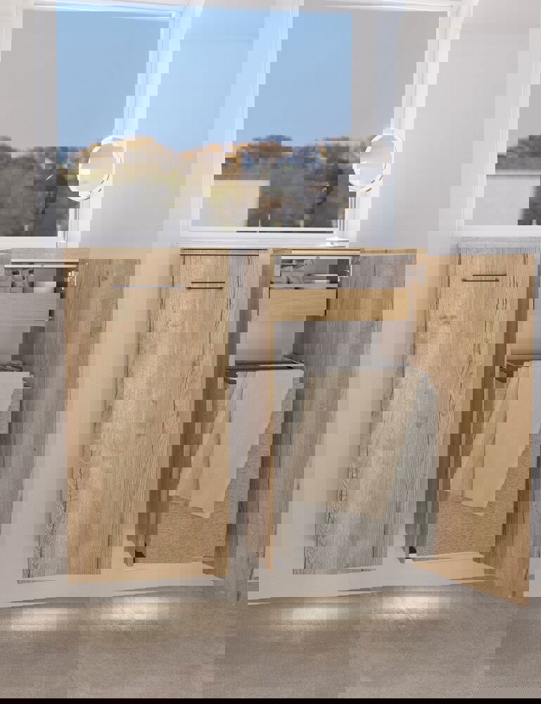 Observera att våra skåp inte kan användas som stöd för tvättmaskin eller torktumlare. Istället kan du välja att använda upp till flera underskåp bredvid tvättmaskinen, där du har plats för dina rengörings- och tvättmedel.