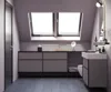 Om du har en snedvägg i ditt badrum är ett tvättställsskåp i kombination med ett skåp en bra idé. Med ett asymmetriskt handfat kan du låta underskåpen stå under den sneda väggen och tvättställsskåpet med tvättstället stå längre in i rummet. På så sätt kan du utnyttja alla dina kvadratmeter i badrummet och få förvaringsutrymme även med begränsat utrymme. Läs mer om badrum och lutande väggar här.