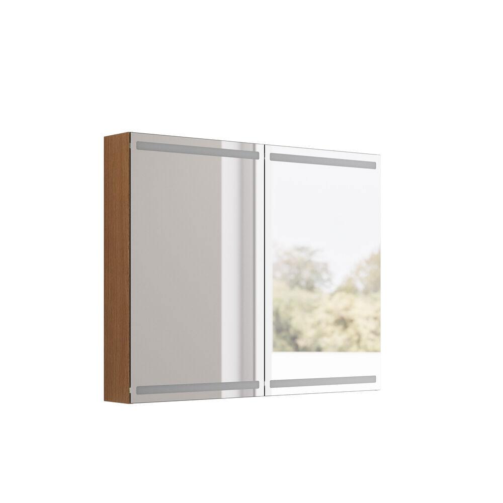 Våra spegelskåp finns i samma design och finish som badrumsmöblerna, så att du kan skapa en komplett och harmonisk look i din inredning. Så om du har valt varm ek till ditt underskåp kan du naturligtvis också skaffa ett spegelskåp i varm ek för att matcha inredningen på sidan av spegelskåpet med dina andra möbler.
