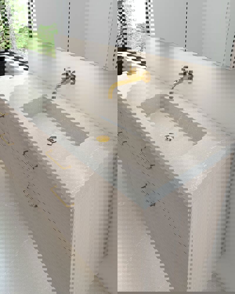 Våra dubbla tvättställ finns också i olika material, så att du kan hitta det perfekta tvättstället för ditt badrum.