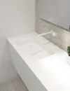 Ett specialanpassat tvättställ ger dig möjlighet att skapa ett badrum med en ren och sammanhängande design. När du väljer ett tvättställ som smälter in i bänkskivan skapar du en harmonisk look som gör utrymmet lugnt och inbjudande. Tänk på att våra formgjutna tvättställ finns i standardmått, men du kan också skräddarsy ditt formgjutna tvättställ så att det passar de exakta måtten i ditt badrum. För att få en sammanhållen stil i badrummet är det viktigt att du tänker på färgsättningen. Ska tvättställsskåpet vara i samma nyans som handfatet eller föredrar du en kontrasterande färg? Leta också efter beslag och speglar som kompletterar diskbänkens design och färger och fundera noga över belysningen ovanför diskbänken eftersom den både kan framhäva materialens struktur och skapa en lyxig atmosfär i badrummet.