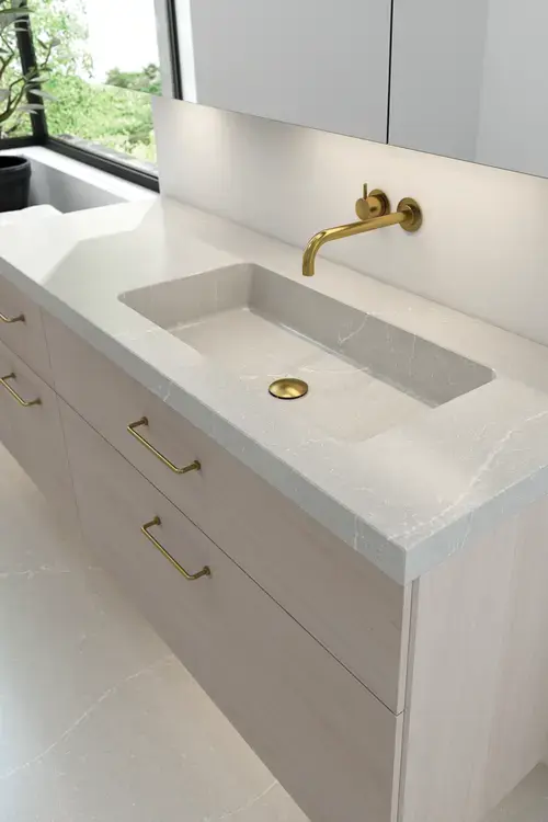 Handtaget eller dess avsaknad spelar en avgörande roll för stilen i ditt badrum. Det är därför ett viktigt beslut att bestämma vilken typ av handtag dina skåp ska ha. Skapa vackra kontraster med det stora urvalet av handtag i olika former och färger, alternativt välj den enkla handtagsfria lösningen med push-open funktion, där du öppnar luckor och lådor med ett lätt tryck. Eller kan du välja skåp med elegant integrerade handtag som följer frontens bredd och vänder uppåt, så vatten och smuts inte kan samlas. Om dina nuvarande möbler fortfarande är funktionella men behöver förnyas, kan du enkelt förändra uttrycket genom att byta ut handtagen. Var dock uppmärksam på att avståndet mellan hålen passar till dina gamla handtag.