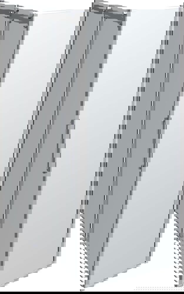Ger mer plats i rummet eftersom den kan vikas ihop efter användningen. Ger möjlighet att möblera nära duschväggen. Två vikdörrar kan också sättas ihop till en duschhörna.