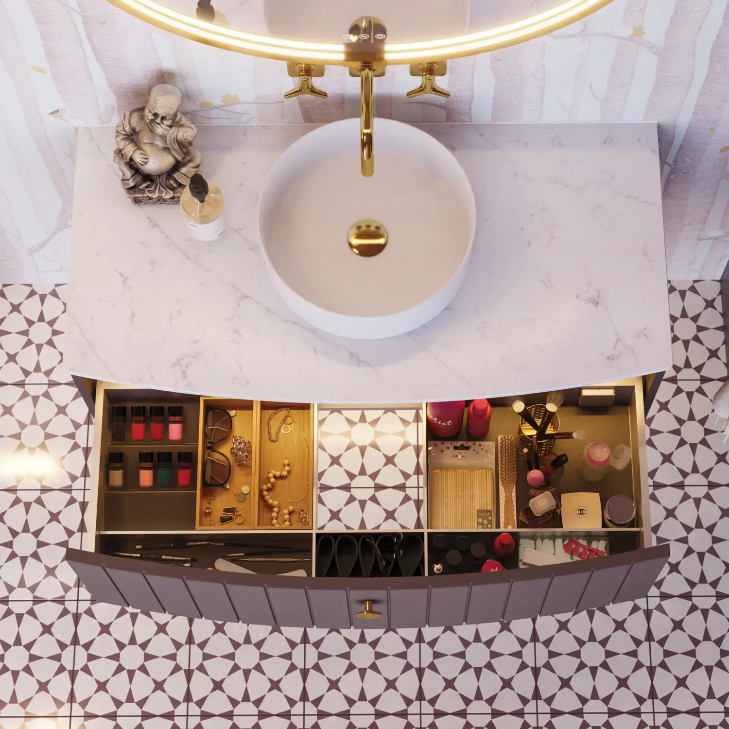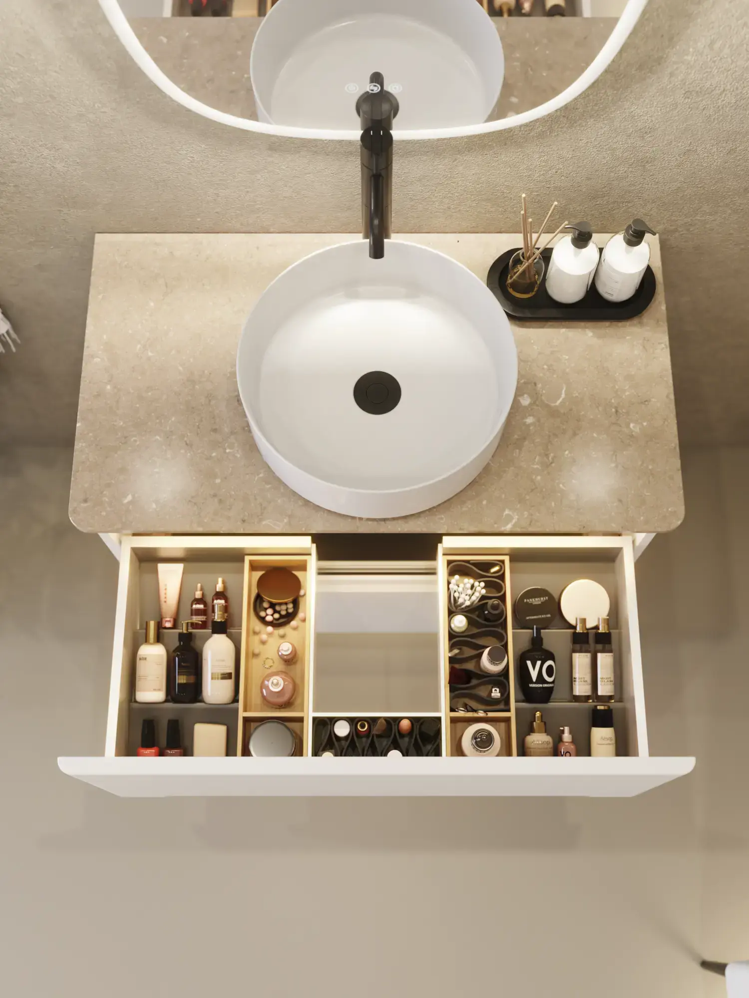 Få systematisk förvaring i lådorna med praktiska tillbehör för badrummet