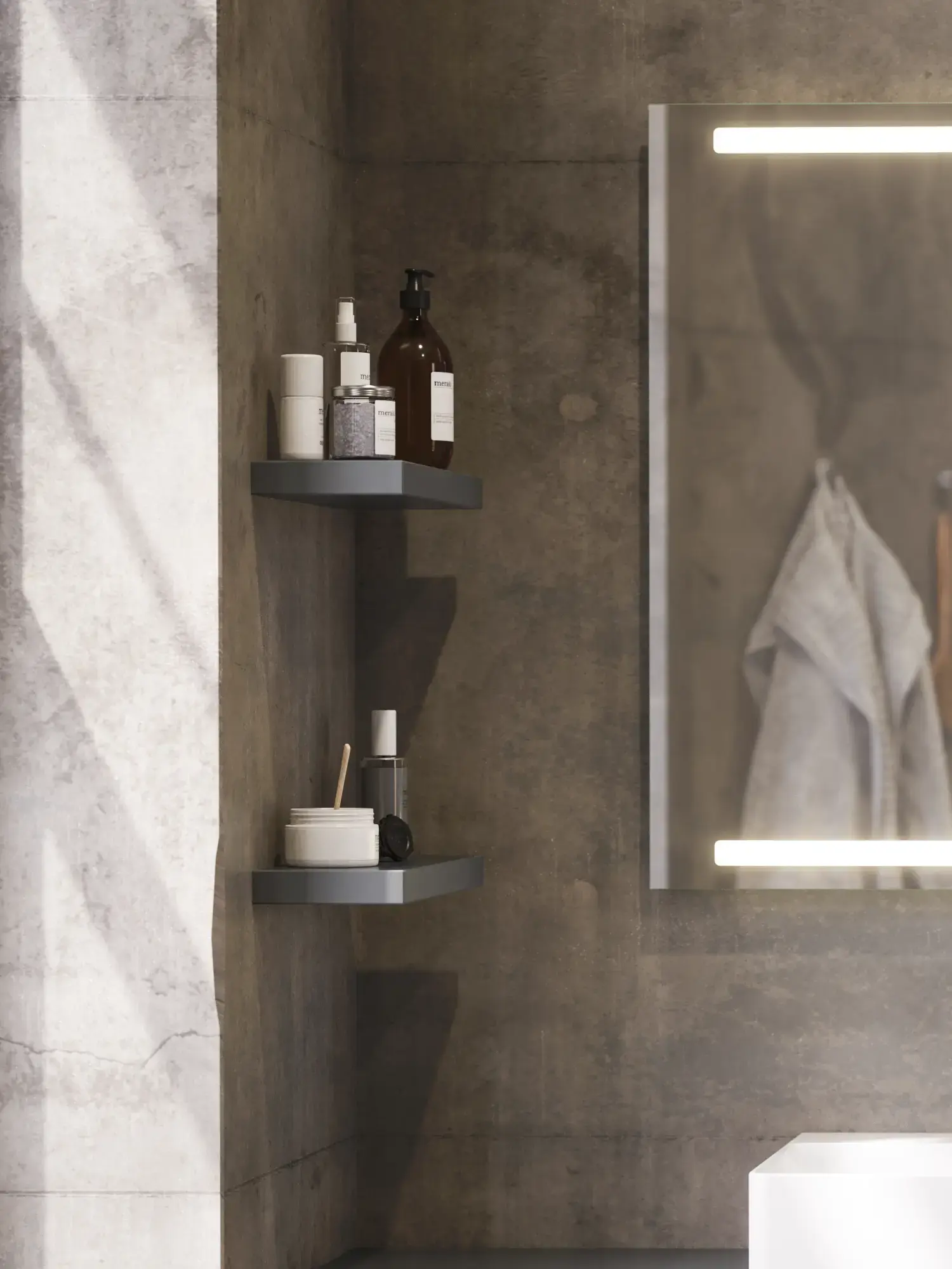 Se till att ha tillräckligt med förvaring i skåp- och lådor, så du kan hålla badrumsattiraljerna inne och dammet ute. Har du inte plats för ett traditionellt högskåp kan du alltid vara kreativ och leka med tanken att hitta yta till överskåp på otraditionella platser, tex ovanför toaletten, radiatorn eller bakom dörren.