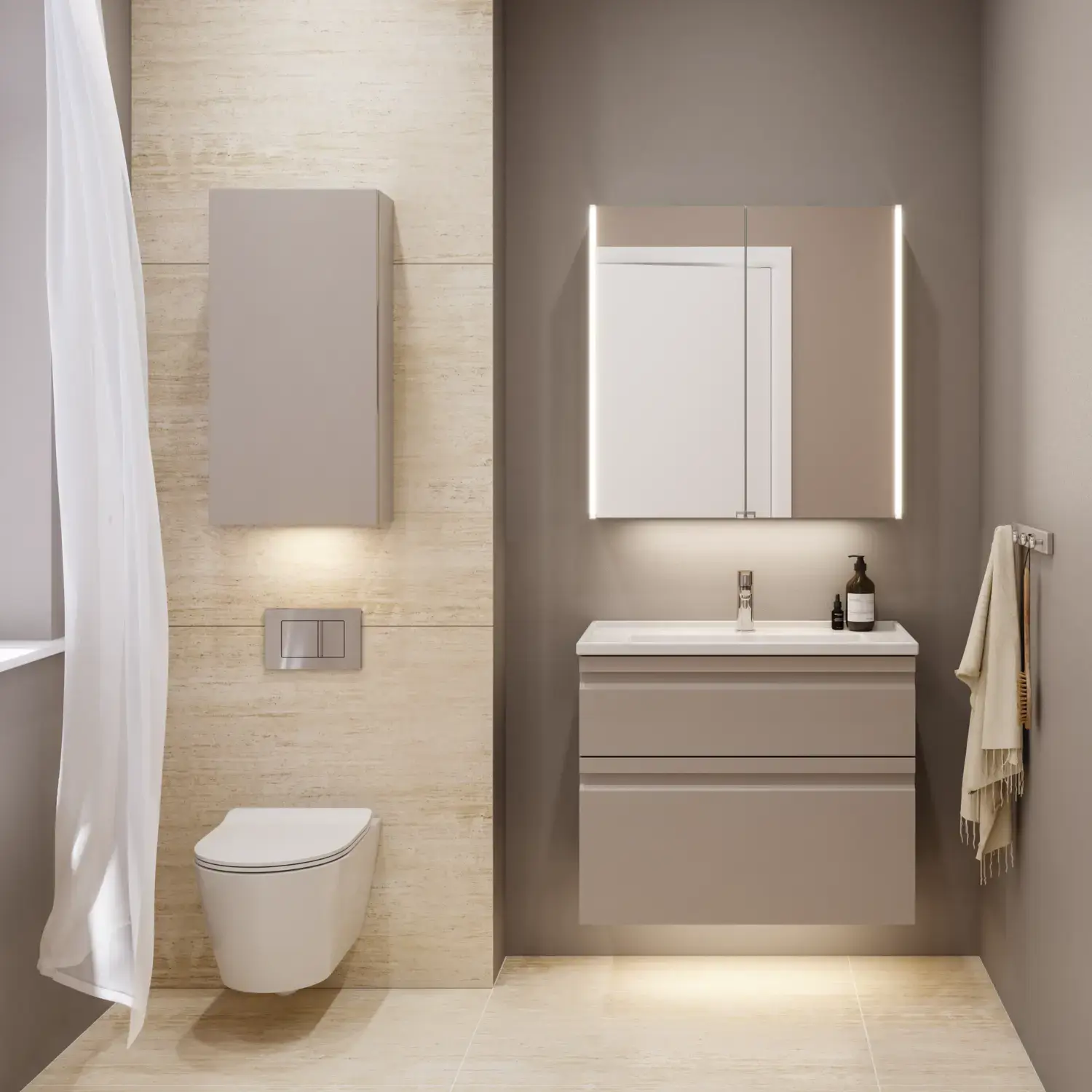 Du kan även inreda med färger i samma nyanser när du har kommit igång med din badrumsrenovering. Det ger ett enhetligt, exklusivt och samtidigt rogivande uttryck om du både har väggar och badrumsmöbler med ton-i-ton-färgskala. Det ger en elegant effekt och har en förmåga att få små ytor att kännas större.