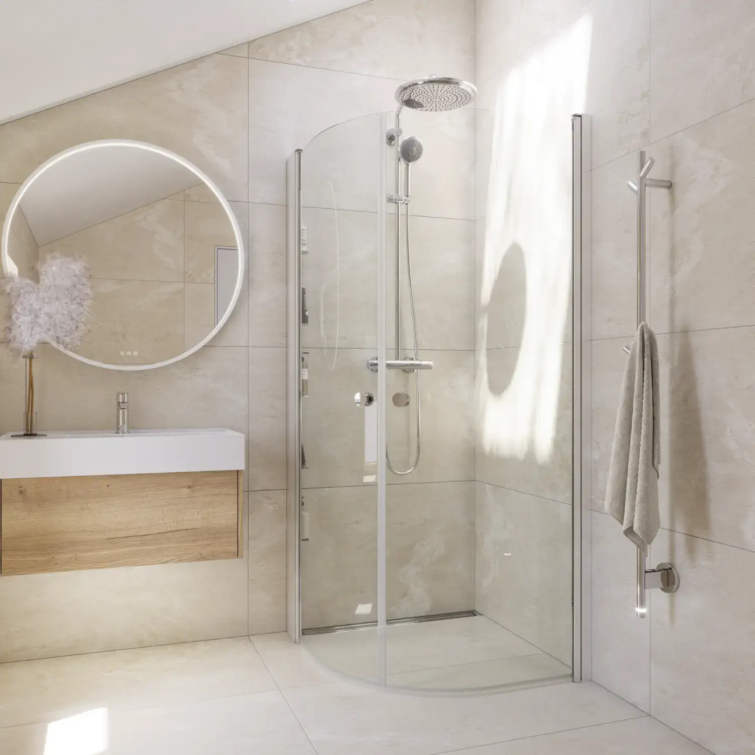 En vägghängd handdukstork är inte bara snygg – den är också praktisk. Du frigör golvyta och får en lösning som smälter in elegant i resten av inredningen. Det ger en känsla av ordning och rymd, vilket är extra värdefullt i mindre badrum – men även i större badrum ger det ett stilrent uttryck.