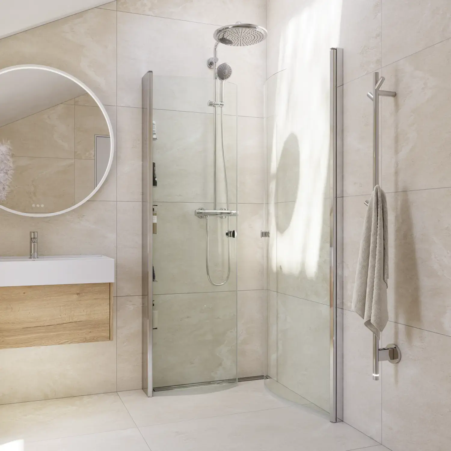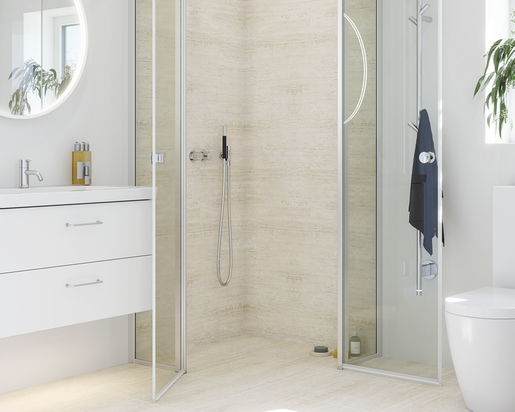 Att ha utrymme för armrörelser i duschen är avgörande för den välmående upplevelsen i det varma vattnet. Det finns flera olika modeller där dörrarna fälls in mot väggarna när duschen inte används. Med dessa lösningar kan du undvika det svåra valet mellan att tränga in dig i duschen eller leva med det utrymme som duschen upptar när den inte används.