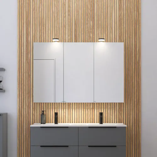 - Extern belysning – För de som föredrar ett spegelskåp med extern belysning finns möjligheten att välja mellan olika lampor med olika design och färger. Utforska vårt sortiment här: