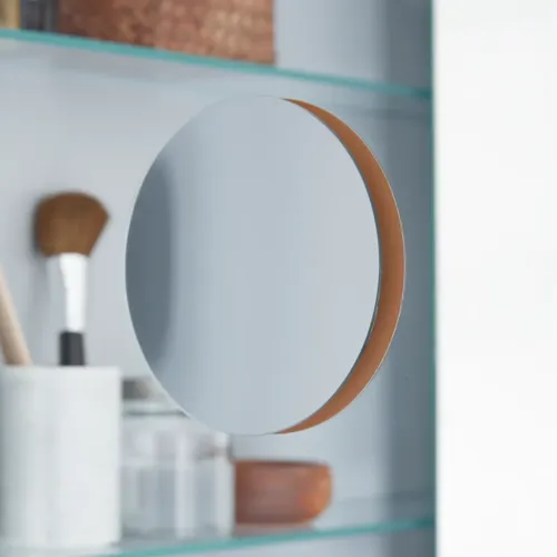- De har flyttbara glashyllor som kan anpassas efter dina förvaringsbehov, det möjliggör förvaring av både höga hårsprayburkar och låga krämburkar