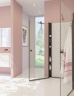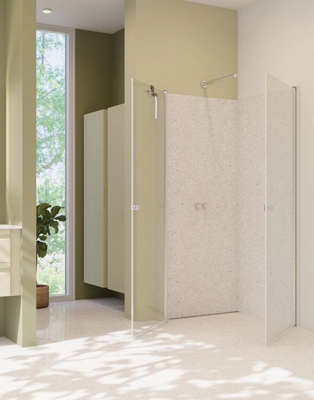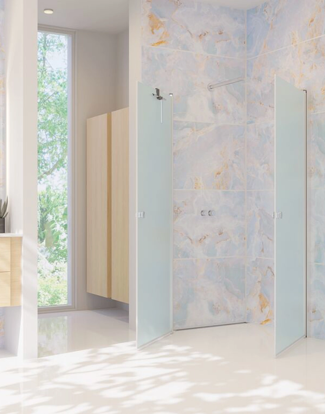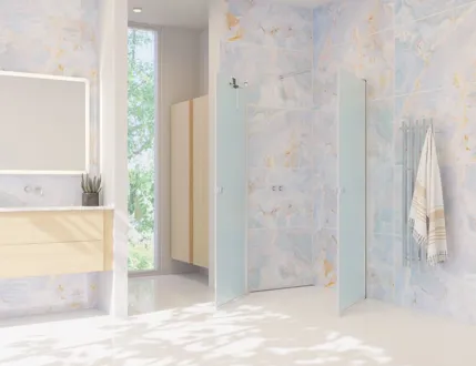 Denna slagdörrar ger både elegans och funktionalitet till ditt badrum. Dörrarna är mycket praktiska och användarvänliga, eftersom de kan öppnas både inåt och utåt. Detta gör att du kan frigöra utrymme i badrummet när duschen inte används. Slagdörrarna öppnas och stängs enkelt och tyst på hållbara gångjärn, vilket garanterar problemfri tillgång till duschen. Samtidigt utgör de en effektiv avskärmning som håller vattnet inne i duschutrymmet och håller resten av badrummet torrt och rent. Det härdade glaset i dörrarna är behandlat med EasyCare, vilket förlänger hållbarheten och livslängden på dina slagdörrar.