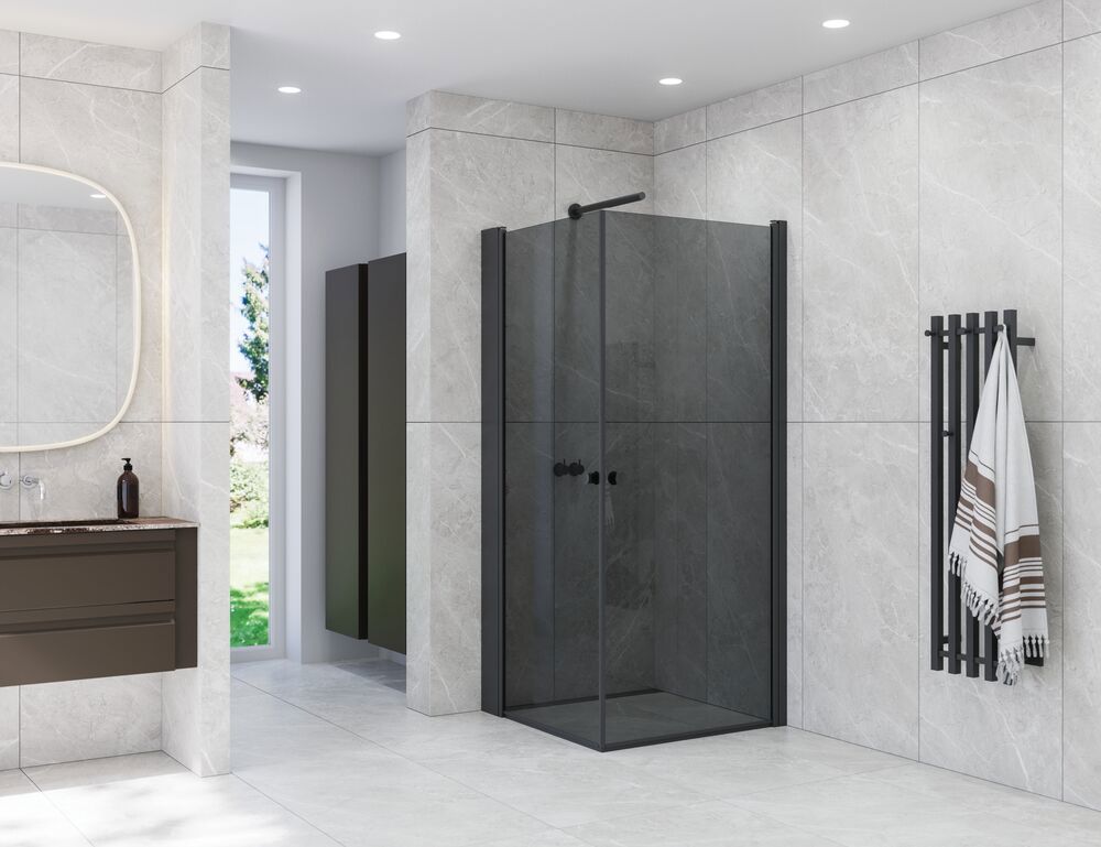 Denna slagdörrar ger både elegans och funktionalitet till ditt badrum. Dörrarna är mycket praktiska och användarvänliga, eftersom de kan öppnas både inåt och utåt. Detta gör att du kan frigöra utrymme i badrummet när duschen inte används. Slagdörrarna öppnas och stängs enkelt och tyst på hållbara gångjärn, vilket garanterar problemfri tillgång till duschen. Samtidigt utgör de en effektiv avskärmning som håller vattnet inne i duschutrymmet och håller resten av badrummet torrt och rent. Det härdade glaset i dörrarna är behandlat med EasyCare, vilket förlänger hållbarheten och livslängden på dina slagdörrar.