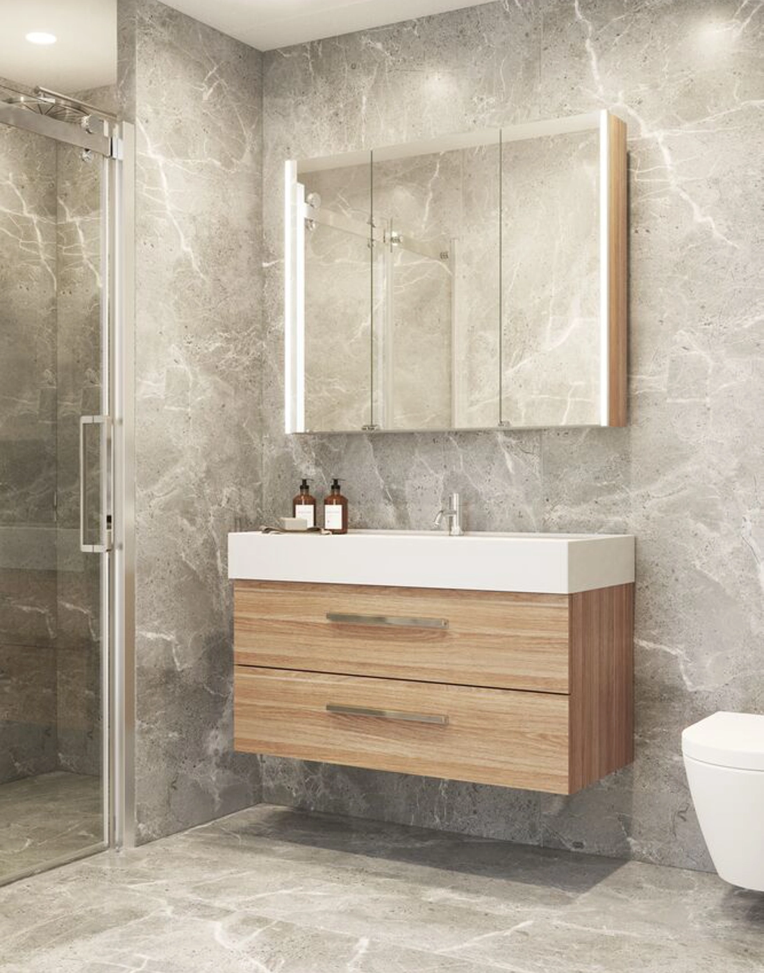 Ambi spegelskåp med belysning och ljusstyrning