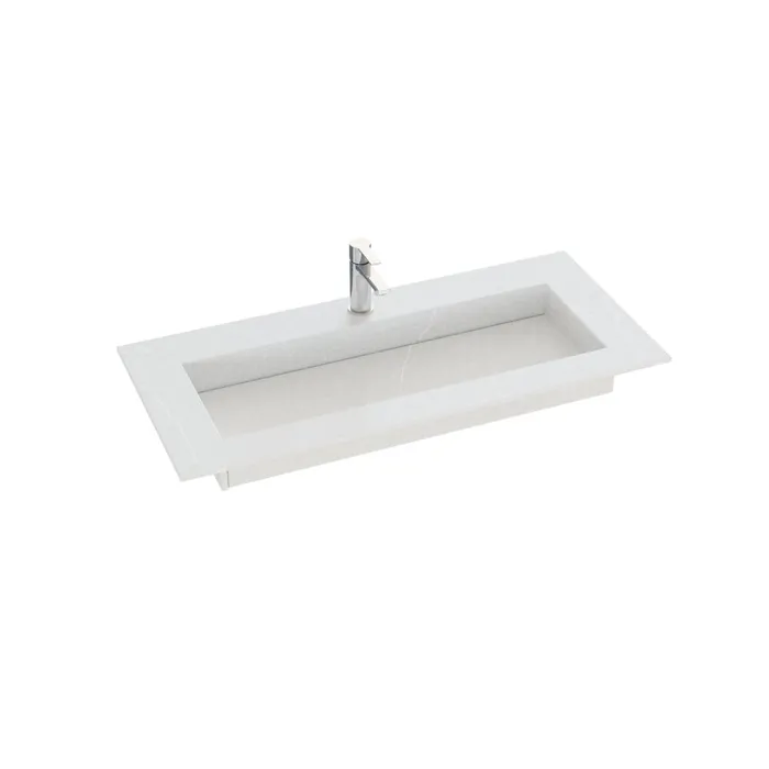 Med Angular tvättstället får du inte bara en elegant och kantig design, utan också möjligheten att få ett tvättställ som passar perfekt för ditt badrum. Tvättstället kan skräddarsys efter mått, vilket betyder att det kan anpassas exakt till dina behov och rummets dimensioner. Denna flexibilitet gör Angular till det ideala valet när du vill ha ett tvättställ som både är funktionellt och designmässigt integreras optimalt i din badrumsinredning. Tvättstället har utvecklats i samarbete med Cosentino och finns i både de klassiska Silestone-dekorerna och den nya, hållbara Trilium-dekoren i Dekton. Trilium har sitt råa, plattliknande utseende och är tillverkat av upp till 80 % återvunnet material, vilket ger tvättstället en extra miljövänlig touch. Den eleganta designfilosofin inkluderar ett lutande tvättfat som effektivt leder vattnet mot ett dolt avlopp, vilket resulterar i en både stilren och praktisk design. Silestone- och Dekton-materialen är inte bara vackra utan också hållbara, eftersom de tillverkas med förnybar energi och återvinner 99 % av vattnet i produktionen.