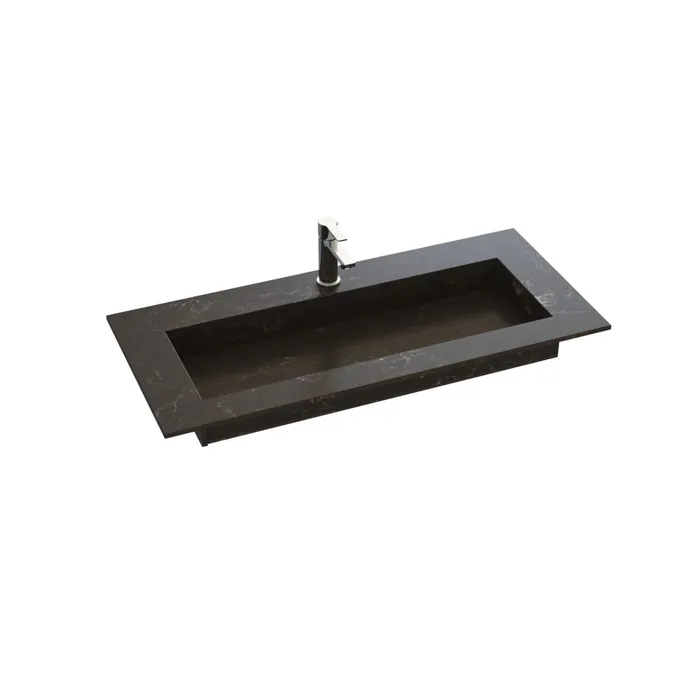 Med Angular tvättstället får du inte bara en elegant och kantig design, utan också möjligheten att få ett tvättställ som passar perfekt för ditt badrum. Tvättstället kan skräddarsys efter mått, vilket betyder att det kan anpassas exakt till dina behov och rummets dimensioner. Denna flexibilitet gör Angular till det ideala valet när du vill ha ett tvättställ som både är funktionellt och designmässigt integreras optimalt i din badrumsinredning. Tvättstället har utvecklats i samarbete med Cosentino och finns i både de klassiska Silestone-dekorerna och den nya, hållbara Trilium-dekoren i Dekton. Trilium har sitt råa, plattliknande utseende och är tillverkat av upp till 80 % återvunnet material, vilket ger tvättstället en extra miljövänlig touch. Den eleganta designfilosofin inkluderar ett lutande tvättfat som effektivt leder vattnet mot ett dolt avlopp, vilket resulterar i en både stilren och praktisk design. Silestone- och Dekton-materialen är inte bara vackra utan också hållbara, eftersom de tillverkas med förnybar energi och återvinner 99 % av vattnet i produktionen.
