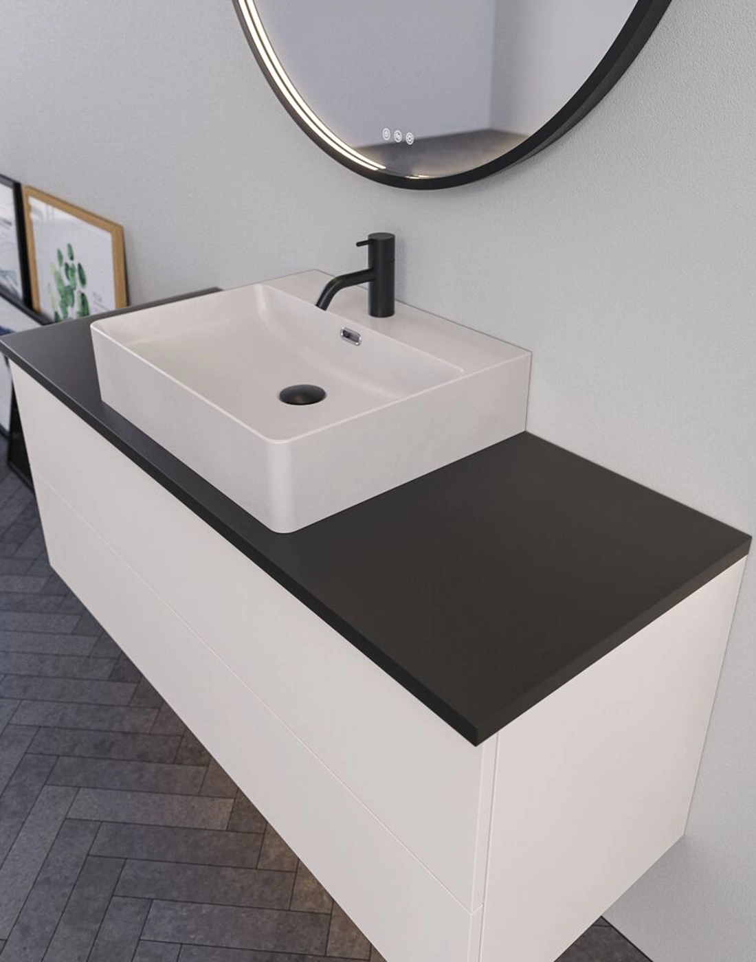 Laminatbänkskivor ger ditt badrum både funktion och stil. Med en design som perfekt matchar den moderna estetiken hos Dansani Luna, ger laminatbänkskivor en hållbar och praktisk yta för ditt badrum. Laminat är känt för sin motståndskraft mot slitage, fläckar och fukt, vilket gör det idealiskt för ett utrymme som badrummet. Laminatbänkskivor finns i en mängd olika färger och texturer för att passa din personliga smak och inredning.