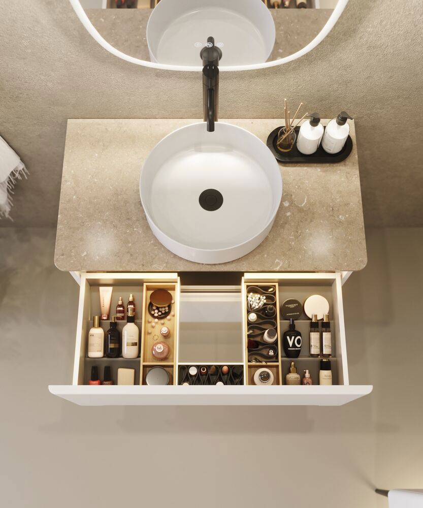 Silestone bänkskivor med rundade hörn kombinerar exklusiv design med hög prestanda - och passar vackert ihop med Vintage-serien med integrerade handtag, där möblerna också har de mjuka, rundade formerna. Resultatet blir en harmonisk helhet i badrummet, där både möbler och bänkskiva talar samma designspråk. Ytan är tillverkad av naturlig kvarts genom en avancerad teknisk process och är stark, fläckavvisande och lätt att underhålla. Den hårda, släta ytan gör bänkskivan motståndskraftig mot vardagens slitage samtidigt som den behåller sitt lyxiga utseende under många år. Silestone finns i ett brett utbud av färger och mönster - från klassiskt, tidlöst vitt till djärva nyanser - så att du kan skapa exakt det utseende som passar din personliga stil. Oavsett vad du väljer kommer bänkskivan att tillföra en touch av elegans och sofistikering till ditt badrum. Observera att bänkskivans färg kan skilja sig från den bild som visas. Vi rekommenderar därför att du tittar på ett fysiskt prov hos en återförsäljare innan du bestämmer dig.