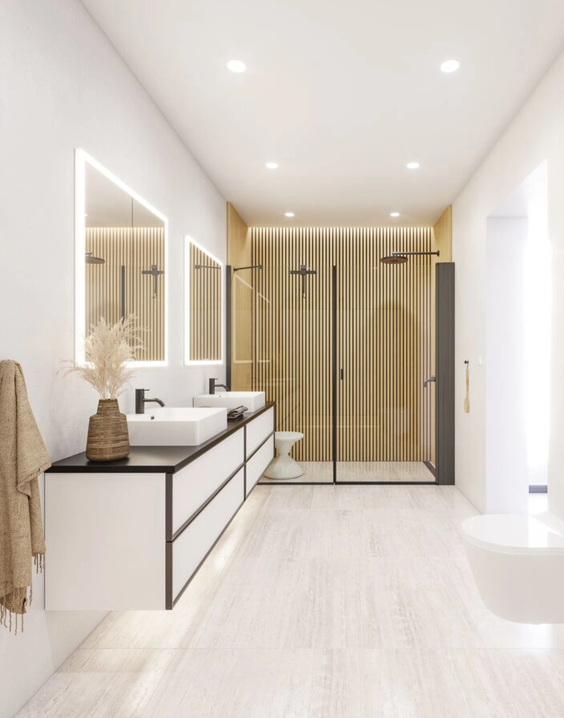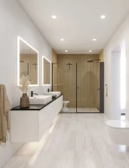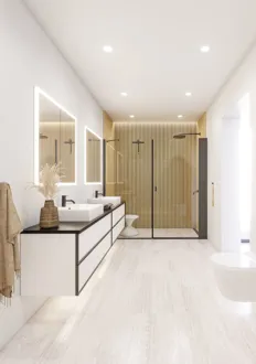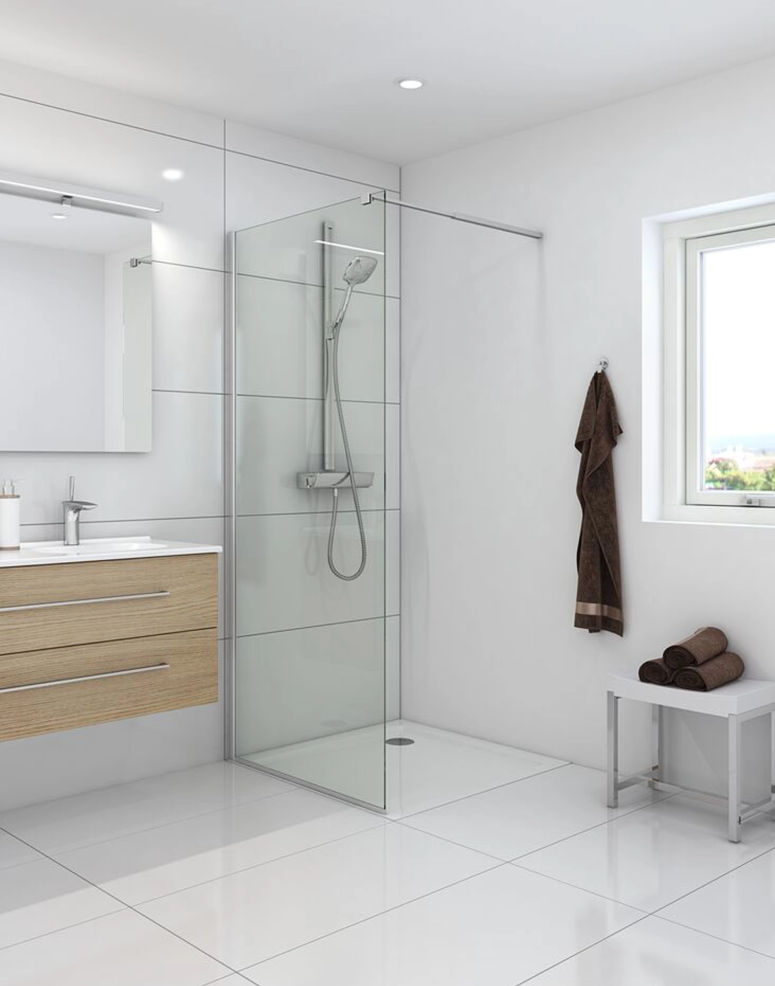 De fasta väggar är designade med fokus på att skapa en rymlig och elegant duschplats som kan anpassas helt efter din personliga stil och badrumsinredning. Våra fasta väggar kan kombineras med andra duschväggar eller duschdörrar, vilket ger dig möjlighet att skapa en lösning som passar perfekt i ditt badrum. Kanske har du mycket utrymme och kan skapa en duschhörna? Eller kanske vill du kombinera den fasta väggen med en slagdörr för en stabil och säker lösning? Oavsett vad du väljer kan du hitta den lösning som passar dig bäst. Glaset i de fasta väggarna är behandlat med EasyCare, en specialbeläggning som motverkar avlagringar av smuts och tvålrester, vilket gör rengöringen mycket enklare. Glaset är dessutom härdat, och den kraftiga konstruktionen och de gedigna materialen gör att väggarna är stabila och pålitliga.