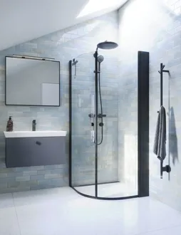 Slagdörrarna kombinerar estetik och funktionalitet för att ge dig den perfekta duschupplevelsen. Dörrarna är tillverkade av förstklassiga material som är behandlade med EasyCare, vilket minskar kalkavlagringar och gör rengöringen betydligt enklare. De böjda slagdörrarna är utformade med användarvänlighet i åtanke. Dörrarna svänger mjukt och tyst på hållbara gångjärn, vilket gör det enkelt att ta sig in i och ut ur duschen. Dörrarna är utformade så att magnetlisten i dörrarna sluter tätt och förhindrar vattenspill utanför duschutrymmet, vilket håller resten av badrummet torrt och säkert. Dessutom kan dörrarna öppnas både utåt och inåt, vilket frigör utrymme i badrummet när duschen inte används.