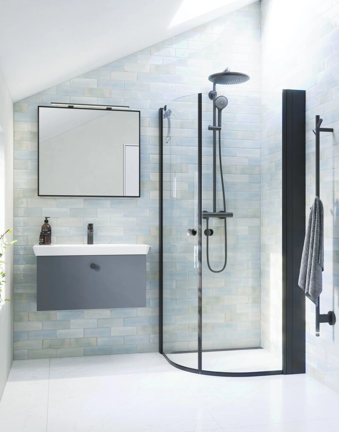 Slagdörrarna kombinerar estetik och funktionalitet för att ge dig den perfekta duschupplevelsen. Dörrarna är tillverkade av förstklassiga material som är behandlade med EasyCare, vilket minskar kalkavlagringar och gör rengöringen betydligt enklare. De böjda slagdörrarna är utformade med användarvänlighet i åtanke. Dörrarna svänger mjukt och tyst på hållbara gångjärn, vilket gör det enkelt att ta sig in i och ut ur duschen. Dörrarna är utformade så att magnetlisten i dörrarna sluter tätt och förhindrar vattenspill utanför duschutrymmet, vilket håller resten av badrummet torrt och säkert. Dessutom kan dörrarna öppnas både utåt och inåt, vilket frigör utrymme i badrummet när duschen inte används.