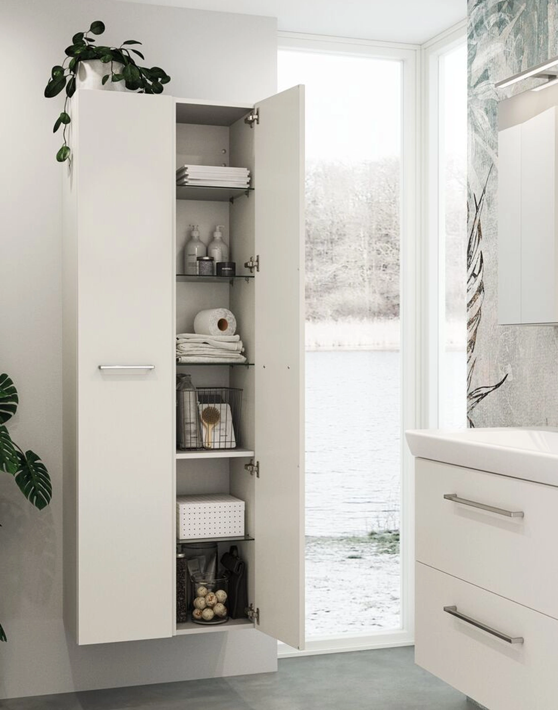 Skapa elegans och funktionalitet i ditt badrum med detta Dansani Mido+ högskåp. Högskåpet ger dig gott om extra förvaringsutrymme i badrummet, och i det här skåpet hittar du 1 trähylla och 4 vackra glashyllor. Ett högskåp är en bra lösning om du behöver extra förvaring i badrummet, och här får du en lösning som också skapar en känsla av lyx i ditt badrum. Med fantastisk dansk design och smarta förvaringsalternativ är detta högskåp ett perfekt tillskott till alla eleganta badrum.