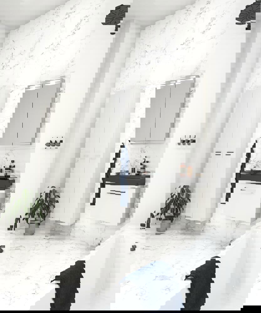 Utnyttja varje centimeter av utrymmet i ditt badrum med Dansani Mido+ högskåp. Med ett högskåp får du plats med alla dina badrumsartiklar, så om du har utrymmet rekommenderar vi definitivt ett högskåp till ditt badrum. I det här högskåpet hittar du 1 trähylla, 4 glashyllor och 3 hyllor i själva dörren, vilket ger dig gott om utrymme och möjlighet att optimera ditt badrum. Upplev en ny dimension av ordning och design i ditt badrum med Dansani Mido+ högskåp.