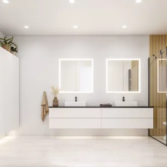 Öka förvaringsmöjligheterna i ditt badrum med ett 40 cm brett högskåp med slät front. Detta snygga högskåp finns i version A, som är ett högskåp med ett trähyllplan och fem glashyllplan, vilket ger dig flexibiliteten att organisera dina badrumsartiklar på ett effektivt sätt. Den smala designen passar perfekt i mindre utrymmen, medan den släta fronten ger en modern och tidlös look. Med det här högskåpet får du en kombination av funktionalitet och estetik som gör ditt badrum mer elegant och organiserat. OBS: Det tillkommer en startsavgift (BI1) för produkter med valfri färg. Den betalas en gång per valfri färg oavsett antal produkter. Kom ihåg att komplettera badrumsmöblerna med små, praktiska detaljr som du har glädje av varje dag. Exempelvis belysning i lådor och skåp, inbyggda eluttag och rörelsesensor på underbelysningen för att underlätta nattliga badrumsbesök. Dessa tillval beställs samtidigt som du köper dina möbler.