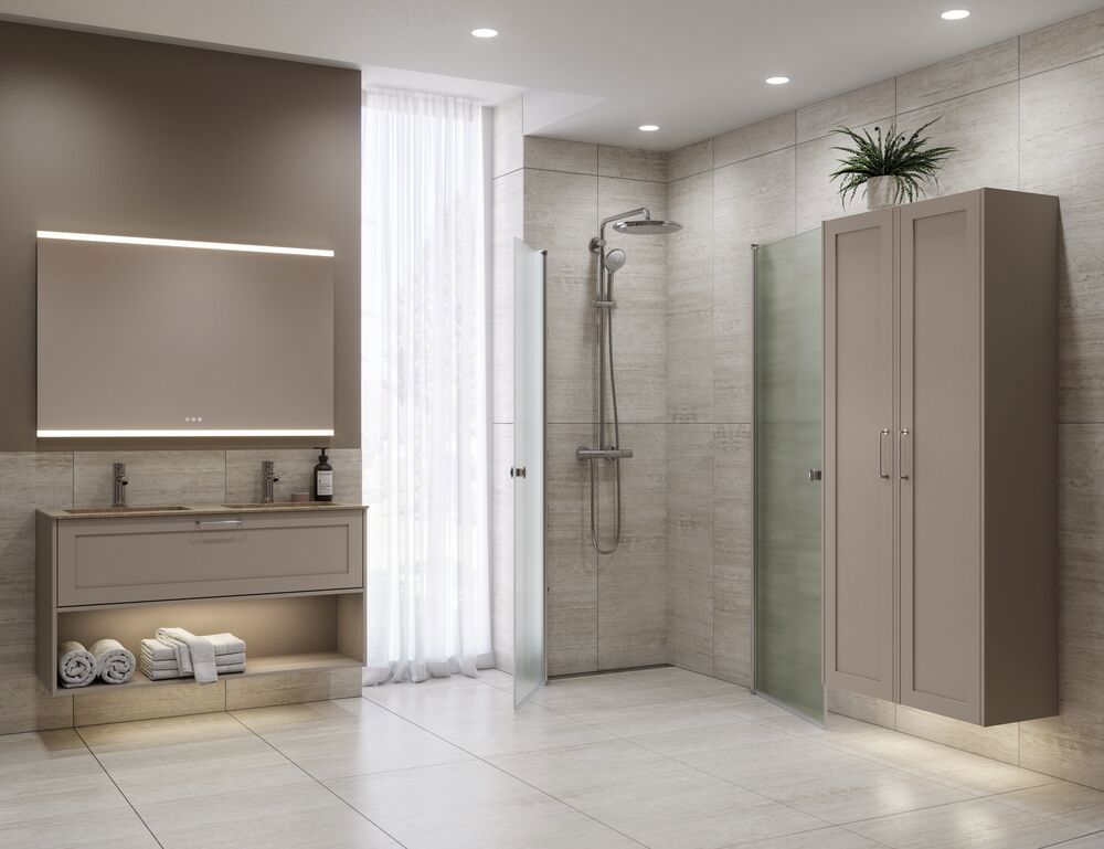 Skapa ett tidlöst uttryck i ditt badrum med ett högskåp med klassisk ramfront. Detta skåp är 176 cm högt och 35 cm djupt, vilket ger dig den perfekta förvaringslösningen för handdukar, toalettartiklar och andra nödvändigheter. Det är utrustat med en trähylla och fem glashyllor, så att du kan organisera dina saker och ha dem lättillgängliga. Den klassiska ramfronten tillför elegans och passar perfekt in i både traditionella och moderna badrum. OBS: Det tillkommer en startsavgift (BI1) för produkter med valfri färg. Den betalas en gång per valfri färg oavsett antal produkter. Kom ihåg att komplettera badrumsmöblerna med små, praktiska detaljr som du har glädje av varje dag. Exempelvis belysning i lådor och skåp, inbyggda eluttag och rörelsesensor på underbelysningen för att underlätta nattliga badrumsbesök. Dessa tillval beställs samtidigt som du köper dina möbler.