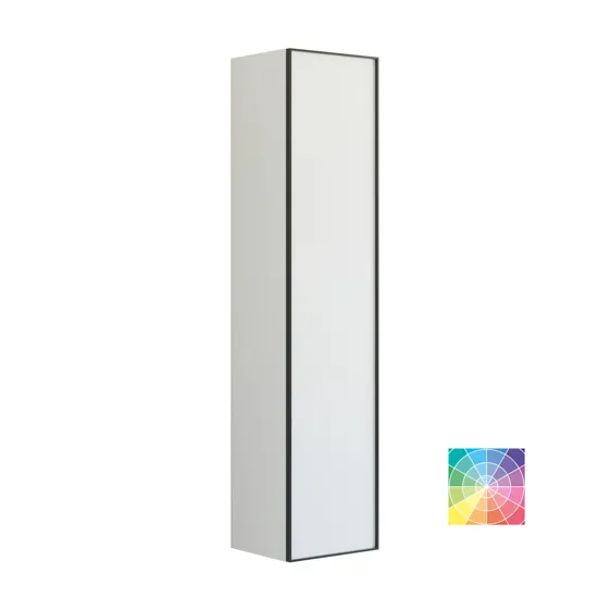 Få en modern och elegant look med ett 40 cm brett högskåp med svart ram. Detta eleganta högskåp är i versoin A, vilket är ett högskåp med en trähylla och fem glashyllor, vilket ger gott om förvaringsutrymme för dina badrumsartiklar. Den svarta ramen ger en sofistikerad kontrast som passar perfekt in i alla badrum. Med det här högskåpet får du både funktionalitet och en tidlös design som hjälper dig att hålla ditt badrum organiserat och snyggt. OBS: Det tillkommer en startsavgift (BI1) för produkter med valfri färg. Den betalas en gång per valfri färg oavsett antal produkter. Kom ihåg att komplettera badrumsmöblerna med små, praktiska detaljr som du har glädje av varje dag. Exempelvis belysning i lådor och skåp, inbyggda eluttag och rörelsesensor på underbelysningen för att underlätta nattliga badrumsbesök. Dessa tillval beställs samtidigt som du köper dina möbler.