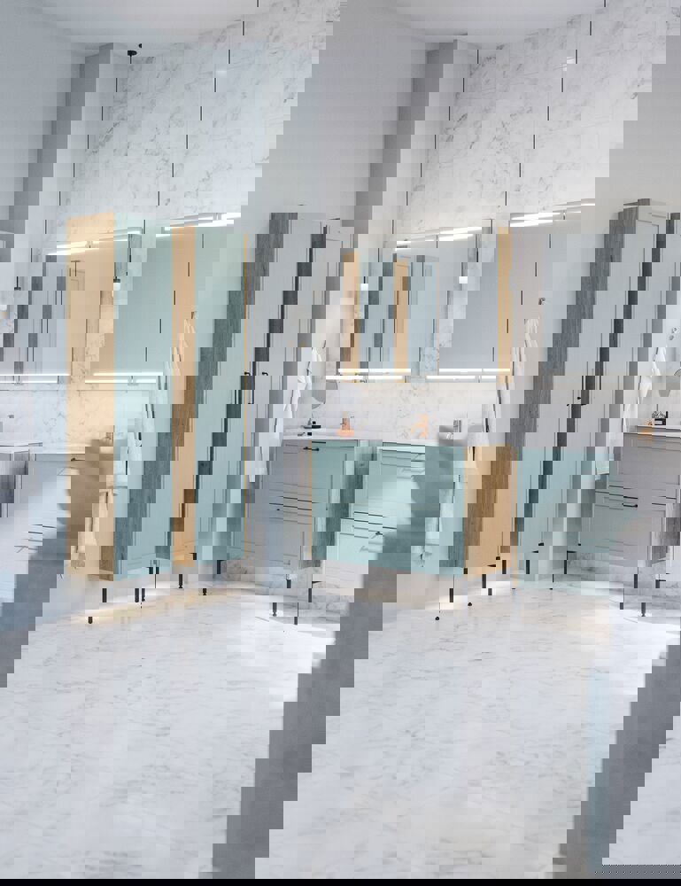 Högskåpet med klassisk ramfront i version B är designat för att ge dig både funktionalitet och stil. Med en trähylla och tre förkortade glashyllor är detta skåp idealiskt för att förvara olika badrumsartiklar. De tre trälådorna på dörren ger extra förvaringsmöjligheter för mindre föremål som kosmetika och mediciner, medan de två glashyllorna är perfekta för att visa upp dina favoritprodukter. Den klassiska stilen på ramfronten tillför ett tidlöst uttryck till ditt badrum. OBS: Det tillkommer en startsavgift (BI1) för produkter med valfri färg. Den betalas en gång per valfri färg oavsett antal produkter. Kom ihåg att komplettera badrumsmöblerna med små, praktiska detaljr som du har glädje av varje dag. Exempelvis belysning i lådor och skåp, inbyggda eluttag och rörelsesensor på underbelysningen för att underlätta nattliga badrumsbesök. Dessa tillval beställs samtidigt som du köper dina möbler.