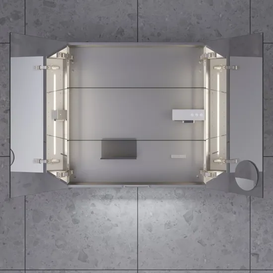 Invändig LED belysning på båda sidor av spegelskåpet