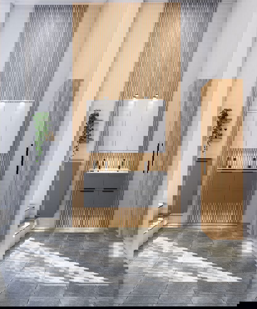 Invändig LED belysning på båda sidor av spegelskåpet