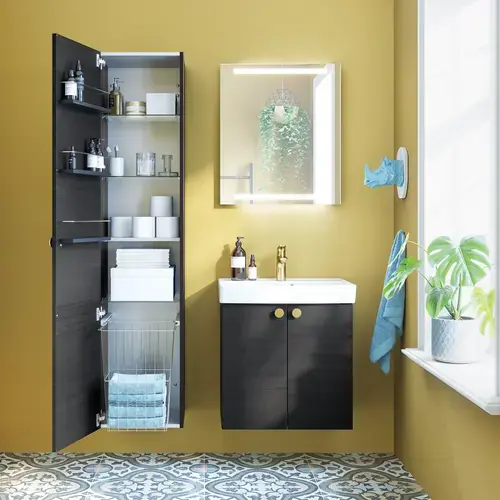 Spegelskåpet Level ger dig massor av extra förvaring i ditt badrum. I spegelskåpet hittar du flera hyllor, en förstoringsspegel, magnetskena, metallhylla och ett eluttag, vilket ger dig gott om utrymme för din tandborste, rakapparat, krämer, deodorant och mycket mer. Spegelskåpet har topp- och bottenbelysning som kan styras i både styrka och färgton, så att du kan få rätt ljus för dina behov. OBS: Det tillkommer en startsavgift (BI1) för produkter med valfri färg. Den betalas en gång per valfri färg oavsett antal produkter.