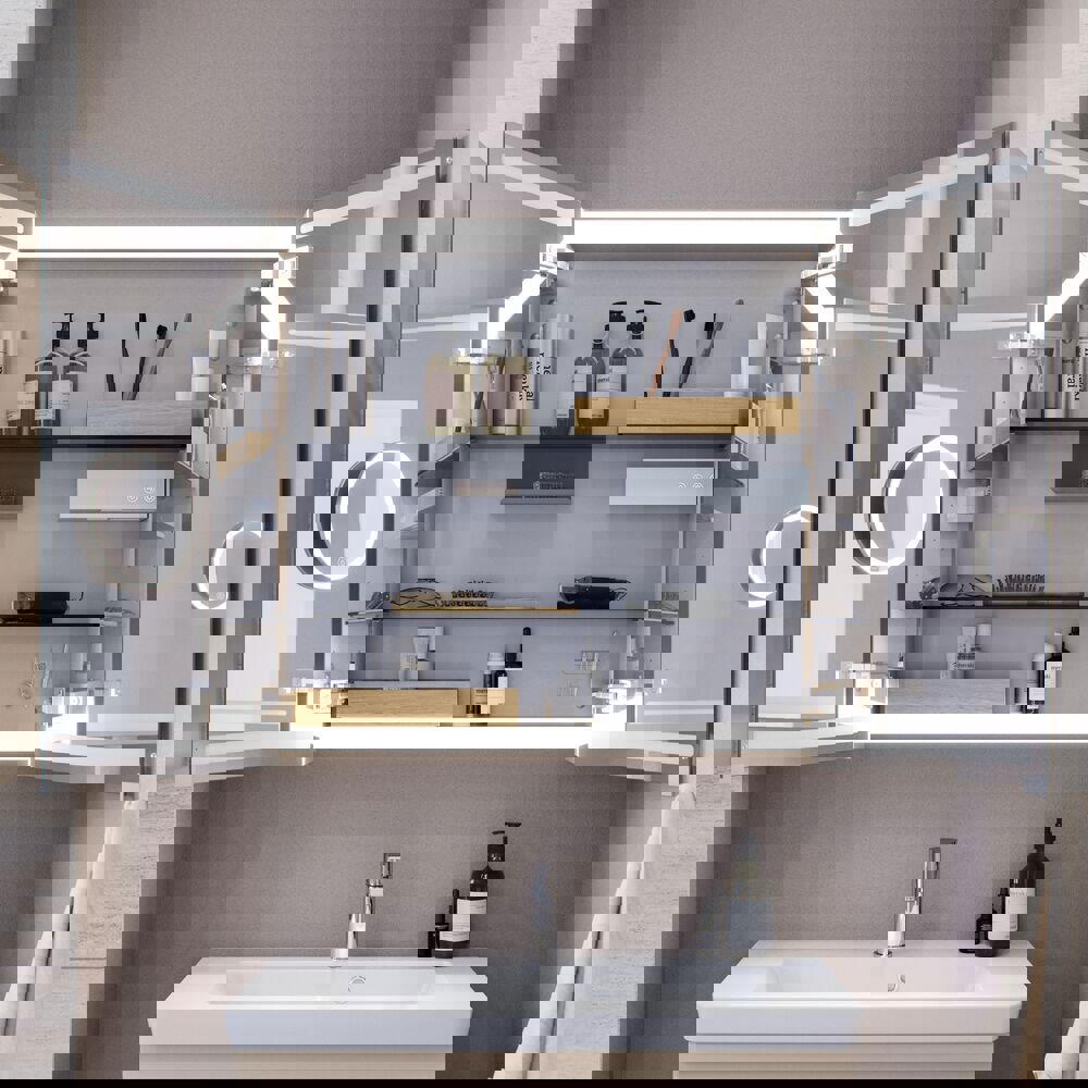 Level spegelskåp med belysning och ljusstyrning