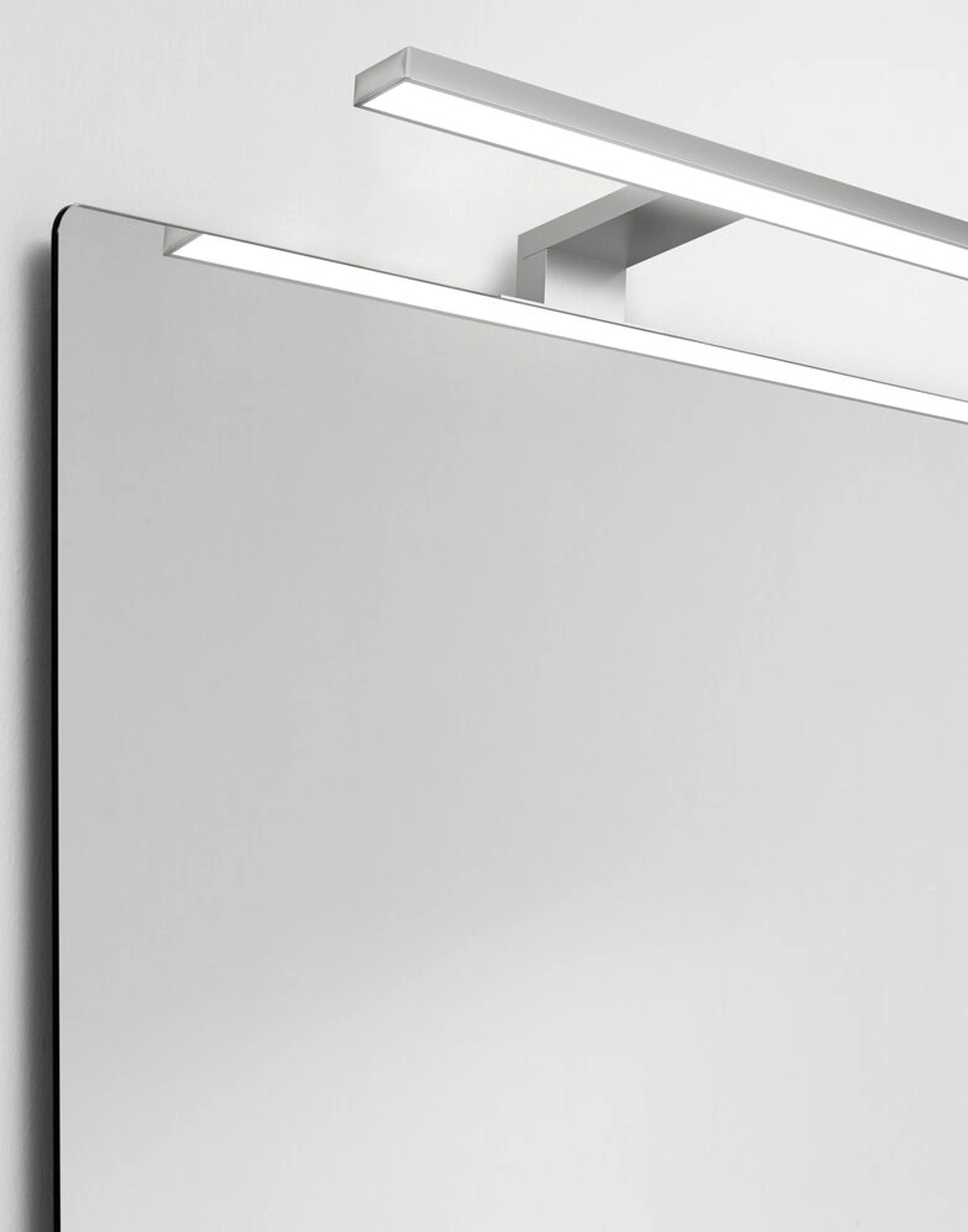 Lampan Libra är en elegant och modern belysning som perfekt kompletterar speglar och spegelskåp. Med sin eleganta design tillför Libra-lampan inte bara belysning utan också en estetisk dimension till badrummet. Den mjuka och jämna belysningen skapar en mysig atmosfär och ger det rätta ljuset för vardagens rutiner. Med Libra-lampan får du en harmonisk kombination av funktionalitet och design.