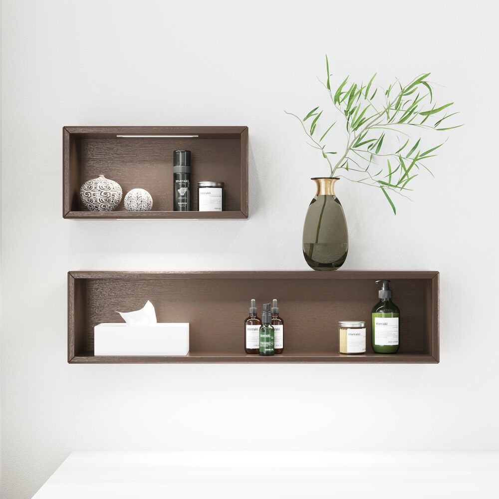 Den öppna hyllan är perfekt för att personifiera ditt badrum och göra det unikt. Den smarta öppna hyllan kan kombineras med ett tvättställsskåp och öppnar upp för en mängd olika inredningsalternativ. Skapa en skräddarsydd lösning genom att kombinera hyllan och tvättställsskåpet på ditt eget sätt och anpassa förvaringsutrymmet efter dina behov. Med den öppna hyllan har du en display för dina favoritsaker eller ett praktiskt fack för förvaring av handdukar, toalettpapper med mera. Lägg till lampor till dina öppna hyllor för extra effekt. Detta ger en subtil belysning som inte bara förbättrar presentationen, utan också skapar en trevlig atmosfär i ditt badrum. OBS: Det tillkommer en startsavgift (BI1) för produkter med valfri färg. Den betalas en gång per valfri färg oavsett antal produkter.