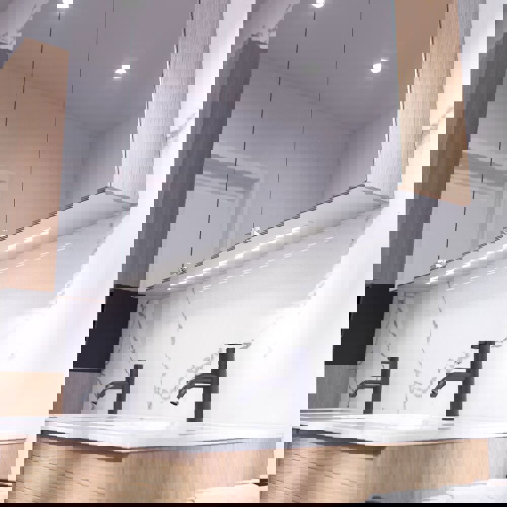 Skapa en mysig och inbjudande atmosfär med ett väggskåp med lamelfront. De två glas hyllorna ger rikligt med möjligheter att organisera och visa upp dina favoriter, samtidigt som den unika designen tillför karaktär till ditt badrum. Med en bredd på 40 cm och en djup på 19 cm är detta skåp perfekt för att maximera förvaringsutrymmet. När det kombineras med en öppen hylla får du en smart och stilren lösning som framhäver både funktionalitet och personlighet i rummet. Kom ihåg att komplettera badrumsmöblerna med små, praktiska detaljr som du har glädje av varje dag. Exempelvis belysning i lådor och skåp, inbyggda eluttag och rörelsesensor på underbelysningen för att underlätta nattliga badrumsbesök. Dessa tillval beställs samtidigt som du köper dina möbler.