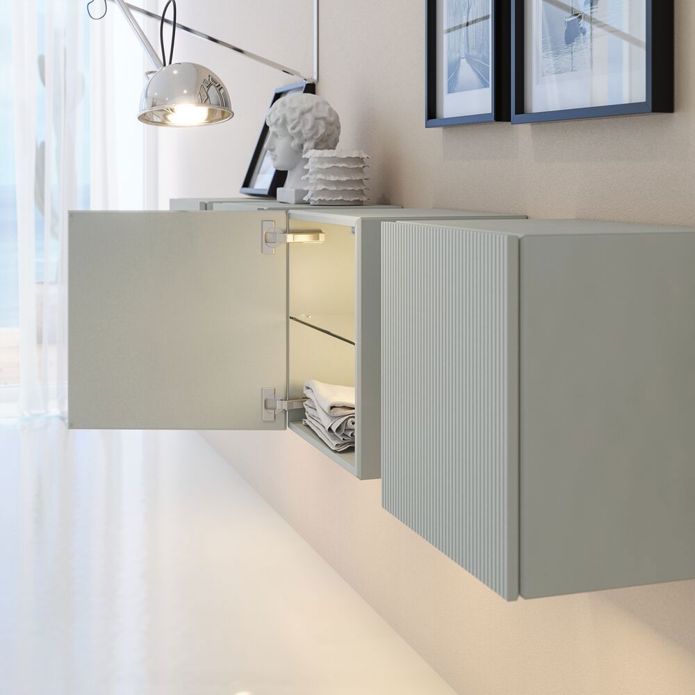Uppgradera ditt badrum med ett snyggt underskåp med en randig front. De vertikala ränderna ger skåpet ett modernt och raffinerat utseende som gör det till mer än bara en praktisk lösning. Med en bredd på 40 cm och ett djup på 19 cm får du effektiv förvaring, samtidigt som de två glashyllorna gör att du kan organisera och presentera allt från krämer till små dekorationer på ett elegant sätt. Väggskåpet kan enkelt kombineras med en öppen hylla för att skapa en personlig och genomtänkt förvaringslösning. Välj mellan vitt för en tidlös klassisk look, sand för en varm och lugn look eller ljusblått för att få in en frisk fläkt i din inredning. Ett väggskåp som kombinerar funktion, estetik och flexibilitet - perfekt för att komplettera ditt badrum med en stilfull touch. Kom ihåg att komplettera badrumsmöblerna med små, praktiska detaljr som du har glädje av varje dag. Exempelvis belysning i lådor och skåp, inbyggda eluttag och rörelsesensor på underbelysningen för att underlätta nattliga badrumsbesök. Dessa tillval beställs samtidigt som du köper dina möbler.