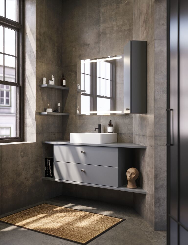 Frigör utrymme och organisera ditt badrum med väggskåp. Detta smarta väggskåp med 2 glashyllor är både elegant och funktionellt. Använd skåpet för förvaring i badrummet för att hålla ordning på krämer, deodoranter etc. i badrummet. Skåpet finns i flera olika färger för att matcha resten av ditt badrum. OBS: Det tillkommer en startsavgift (BI1) för produkter med valfri färg. Den betalas en gång per valfri färg oavsett antal produkter. Kom ihåg att komplettera badrumsmöblerna med små, praktiska detaljr som du har glädje av varje dag. Exempelvis belysning i lådor och skåp, inbyggda eluttag och rörelsesensor på underbelysningen för att underlätta nattliga badrumsbesök. Dessa tillval beställs samtidigt som du köper dina möbler.