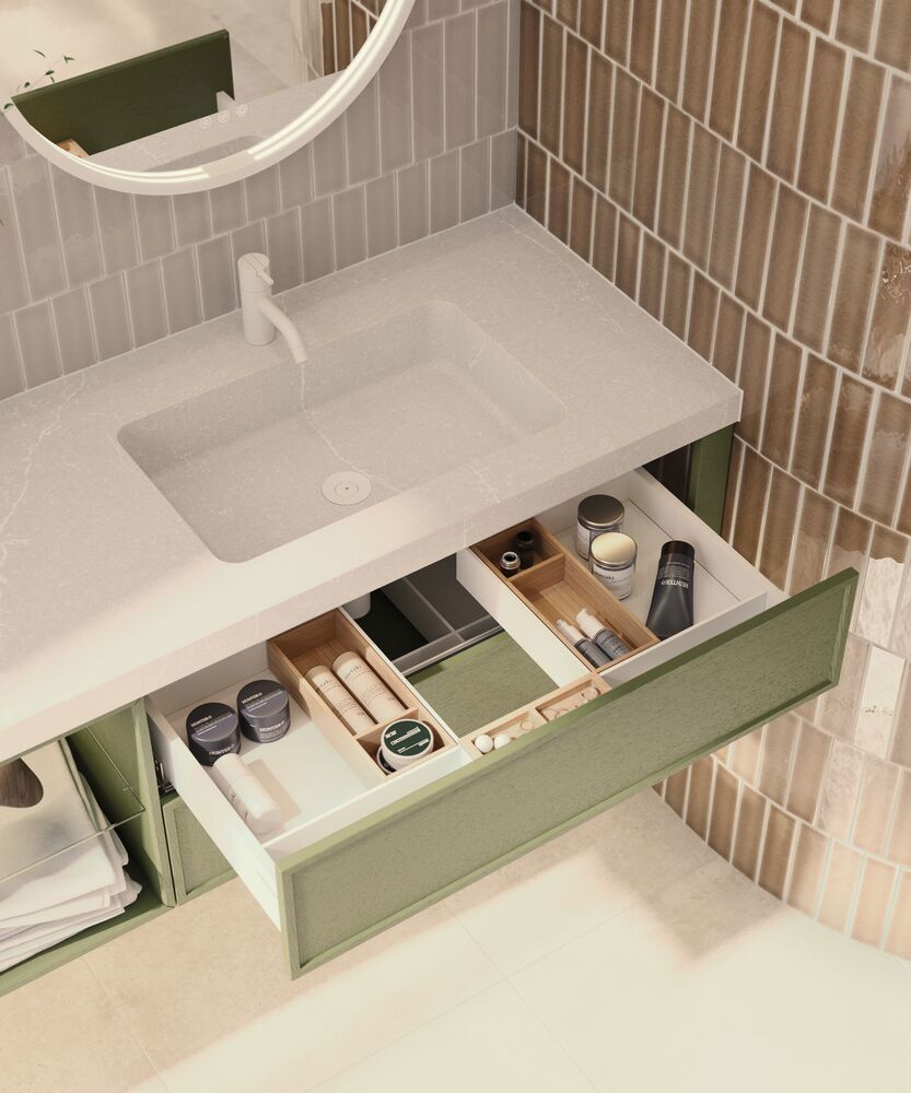 Karmfronter är en av de största trenderna inom inredning - och med Calidris kan du ta med dig denna eleganta stil in i ditt badrum. Den vackra inramningen skapar en klassisk men ändå modern look som ger dina möbler karaktär och personlighet. Fronten finns i flera färger och ytbehandlingar så att du kan anpassa den efter din stil. Oavsett om du drömmer om ett ljust, nordiskt badrum eller vill ha en varm och exklusiv atmosfär kan ramfronten sätta tonen. Med Calidris ramfronter får du en look som både följer dagens trender och har en tidlös känsla som du kan njuta av i många år framöver.  Anmärkning: Denna front fungerar som ett tillval till din möbel, så välj först storlek och artikelnummer för din badrumsmöbel och lägg sedan till den valfria fronten i din beställning.
