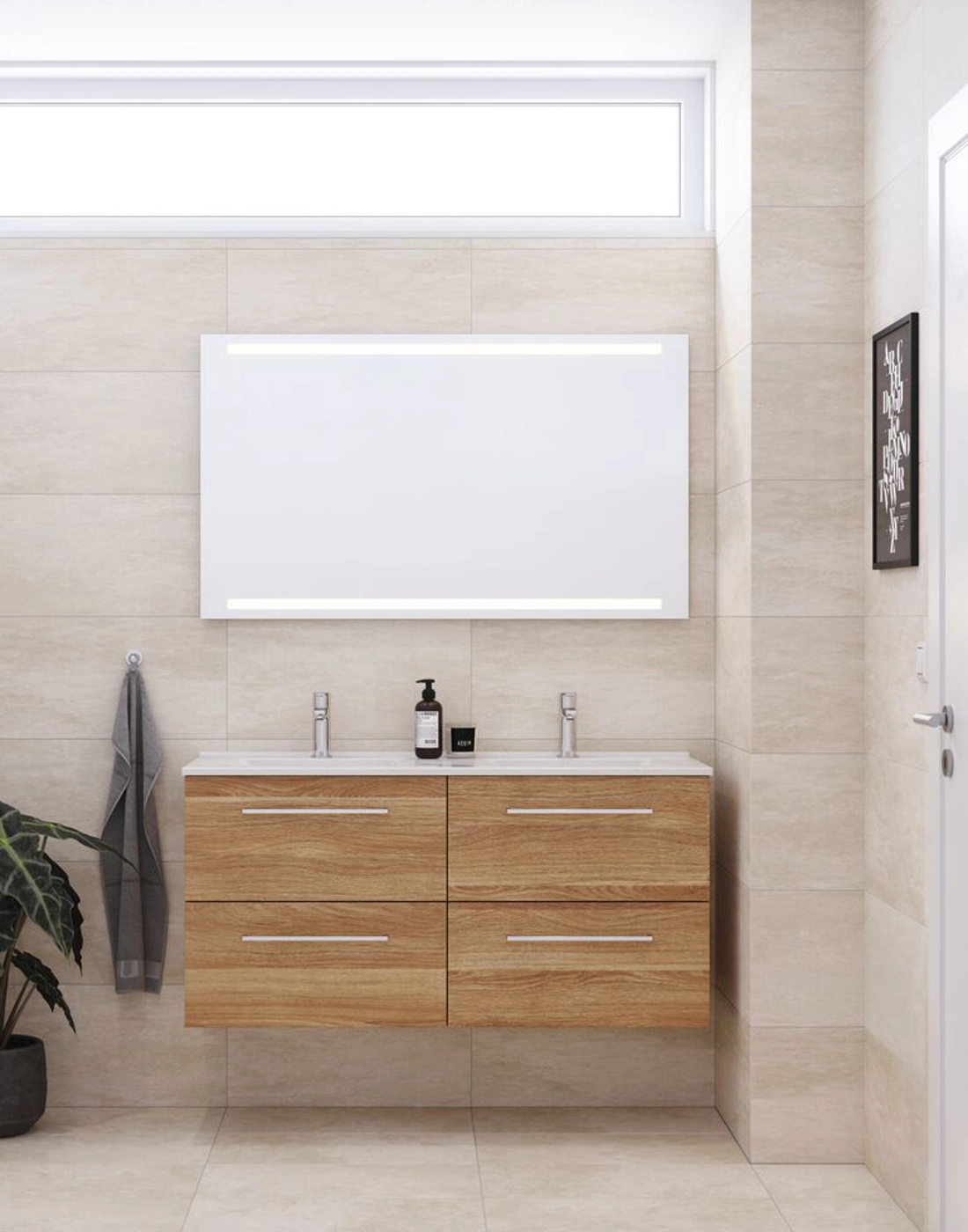 Repeat-spegel är ett elegant och praktiskt val för ditt badrum. Spegeln har inbyggt belysning i toppen och botten, vilket skapar optimal belysning i rummet. Repeat-spegeln finns tillgänglig med eller utan sensor. Om du väljer sensormodellen kan du enkelt tända och släcka ljuset utan att röra spegeln. Spegeln är av otroligt hög kvalitet, vilket gör den både hållbar och slitstark. Du kan köpa ett monterat värmefält för spegeln för att förhindra att spegeln immar igen när du duschar. Du måste själv installera värmefältet.