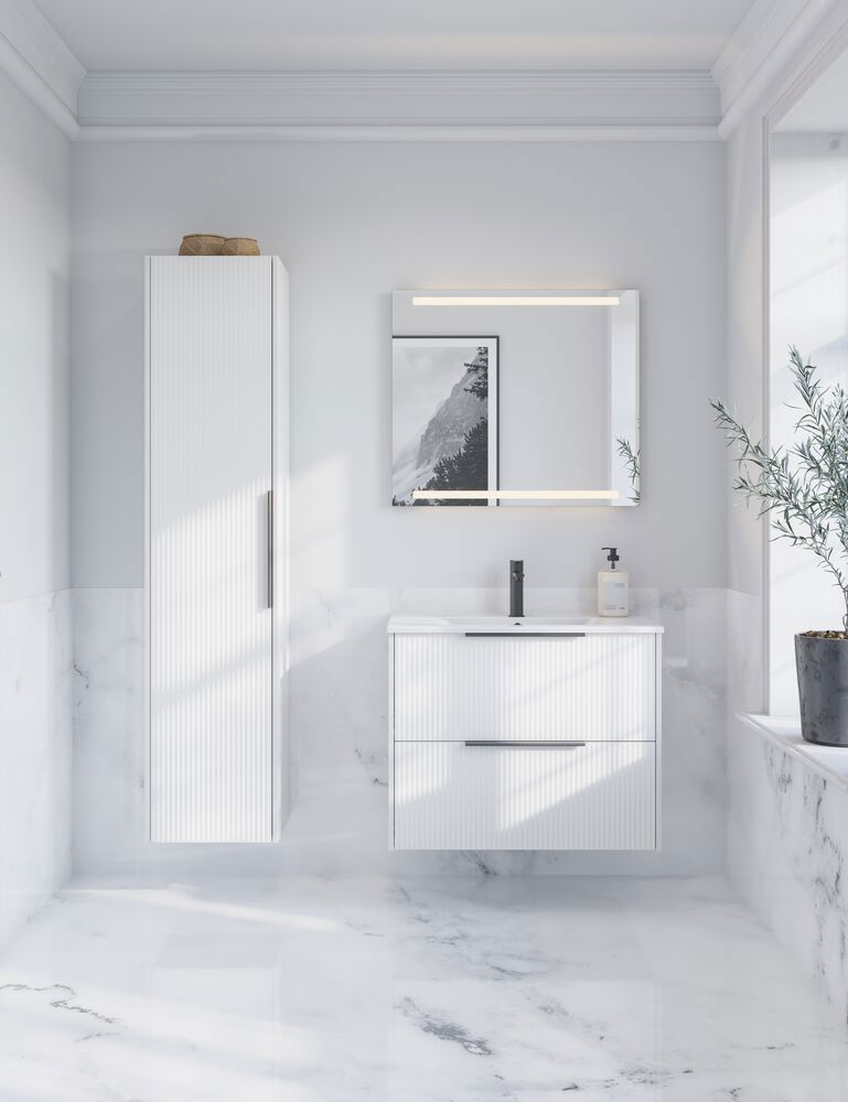 Repeat-spegel är ett elegant och praktiskt val för ditt badrum. Spegeln har inbyggt belysning i toppen och botten, vilket skapar optimal belysning i rummet. Repeat-spegeln finns tillgänglig med eller utan sensor. Om du väljer sensormodellen kan du enkelt tända och släcka ljuset utan att röra spegeln. Spegeln är av otroligt hög kvalitet, vilket gör den både hållbar och slitstark. Du kan köpa ett monterat värmefält för spegeln för att förhindra att spegeln immar igen när du duschar. Du måste själv installera värmefältet.