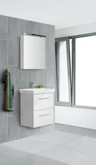 Spegelskåpet Select är mycket mer än bara ett spegelskåp - det är din personliga badrumsuppgradering. Välj dina egna lampor och skapa den perfekta belysningen för att starta dagen med stil. Med spegelskåpet får du gott om förvaringsutrymme och ett elluttag för dina elektriska apparater. Upplev bekvämlighet och elegans i ett med Select spegelskåp - din dagliga följeslagare för en strålande morgon.